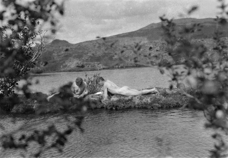 Í Oddum við Húsafellsskóg. 1931 eða 1932. Þorsteinn Jónsson f. 5.4. 1896 og óþekktur maður.