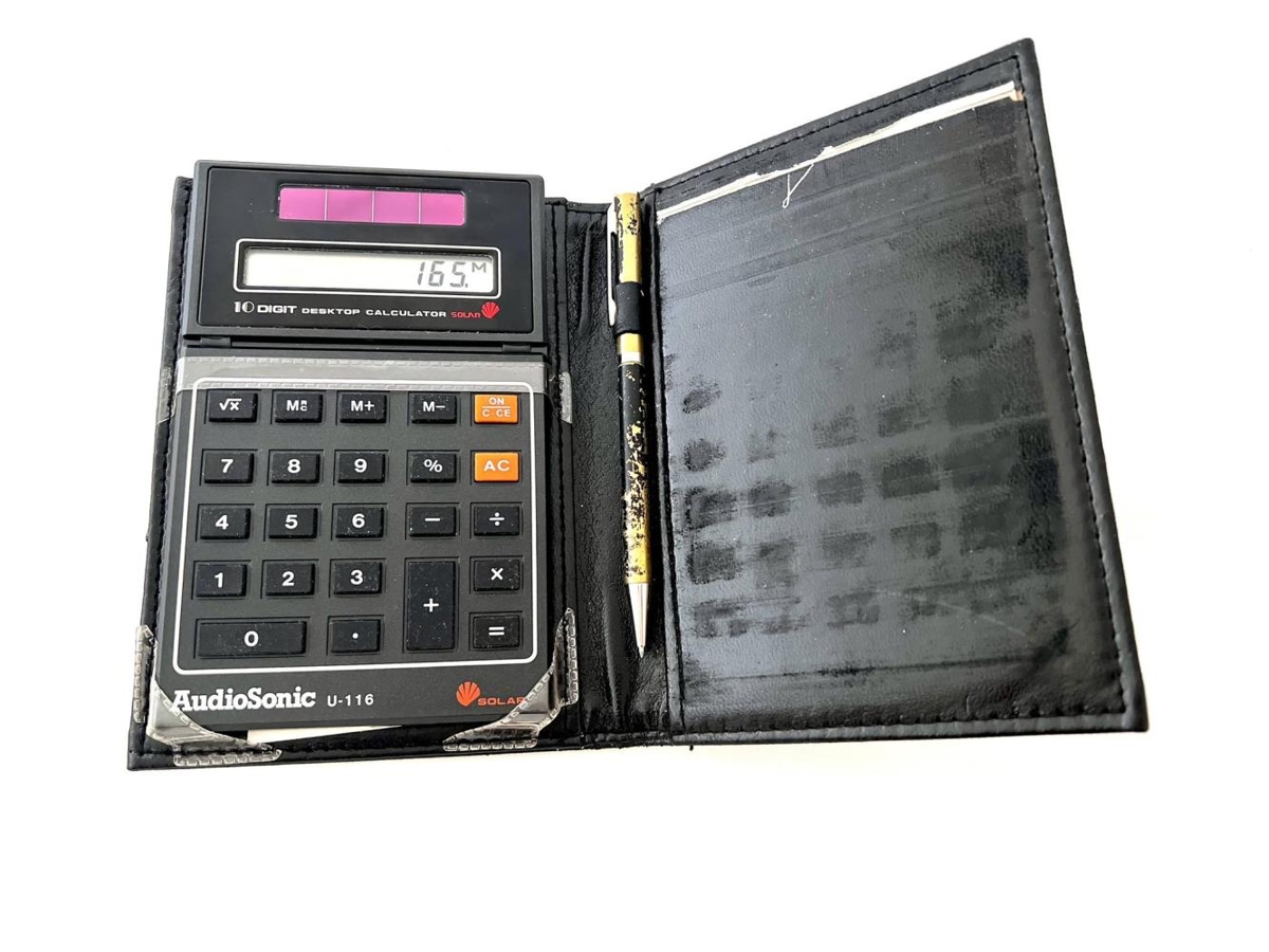 Vasareiknivél af gerðinni AudioSonic, í svörtu leðurhulstri.