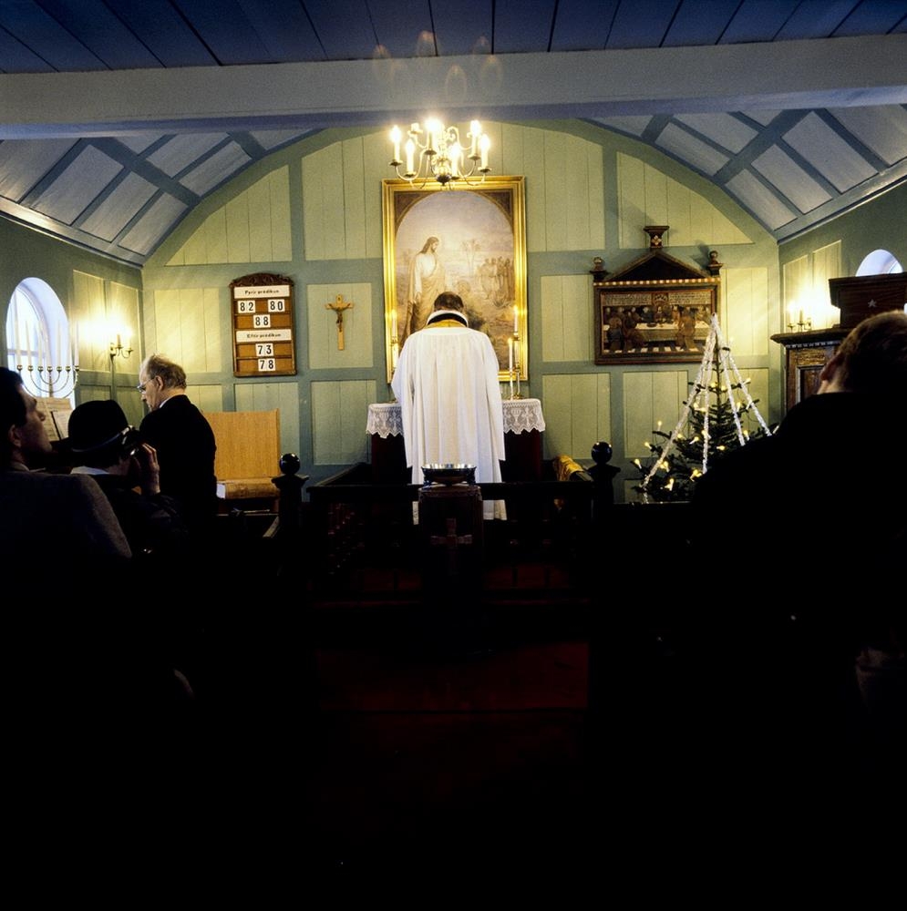 Kirkja, jólamessa, prestur, predikunarstóll.