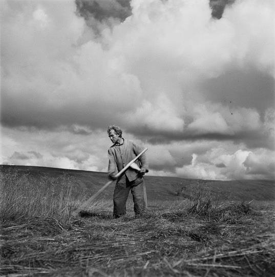 Sláttur með orfi og ljá á Signýjarstöðum. Guðlaugur Jóhannesson f. 5.8.1897. Laugi. Um eða fyrir 1940.