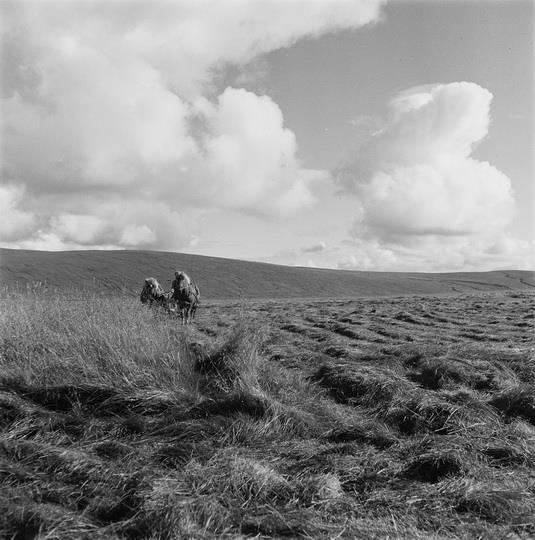 Slegið með sláttuvél. Guðlaugur Jóhannesson f. 5.8.1897.