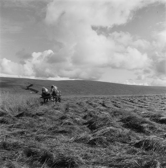 Slegið með sláttuvél. Guðlaugur Jóhannesson f. 5.8.1897.