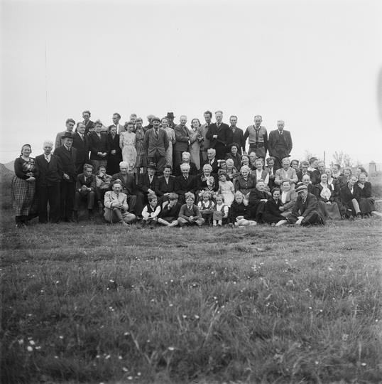 Gullbrúðkaup Jóseps Elíeserssonar f. 20.10. 1863 og Ástríðar Þorsteinsdóttur f. 18.5. 1877 á Signýjarstöðum. Myndin tekin á Húsafelli 8. júlí 1948. Gestir nafngreindir í lok listans bls 22