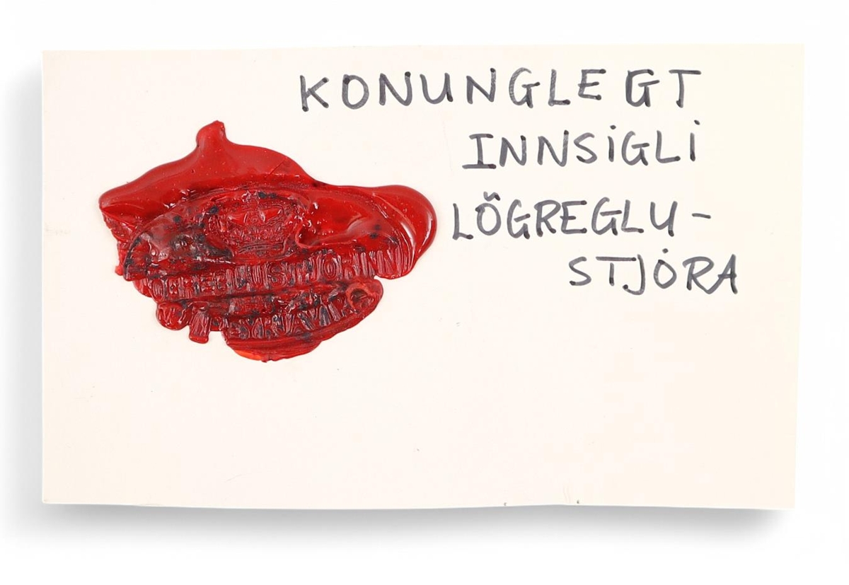 Innsigli, rautt vax á blaði, kóróna og "Lögreglustjórinn í Reykjavík".