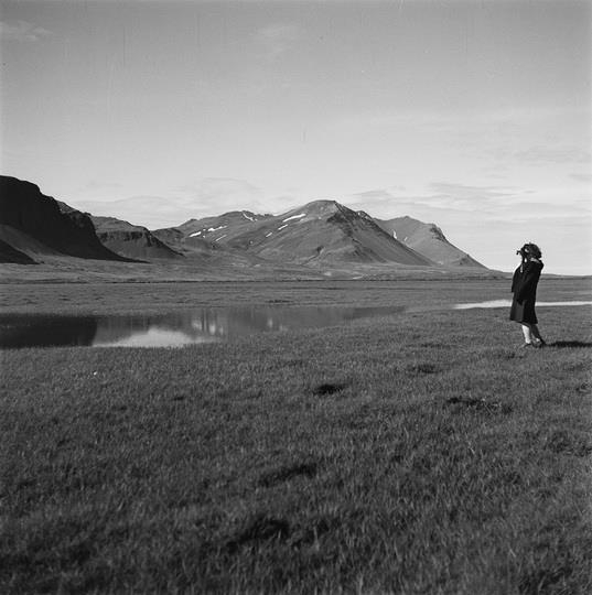 Hafnarfjall séð yfir Hvnneyrarfit. Sennilega Jósefína Gísladóttir.