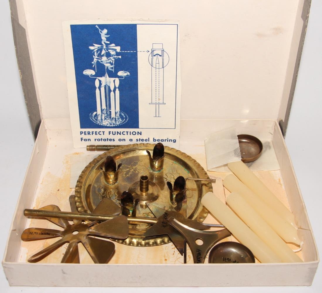 Jólaórói úr messing. H. 23 cm, þv. 12,5 cm. Fyrir fjögur kerti. Þegar kveikt er á kertunum snýst rá með þremur englum og neðan úr þeim er messing tönn sem rekst í skálar sem eru á hliðarörmum og þá klingir fallega í þeim.
