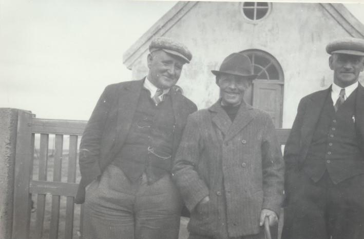 Ingimar, Guðmundur refaskytta og Björn á Núpi, við Sæbólskirkju.
