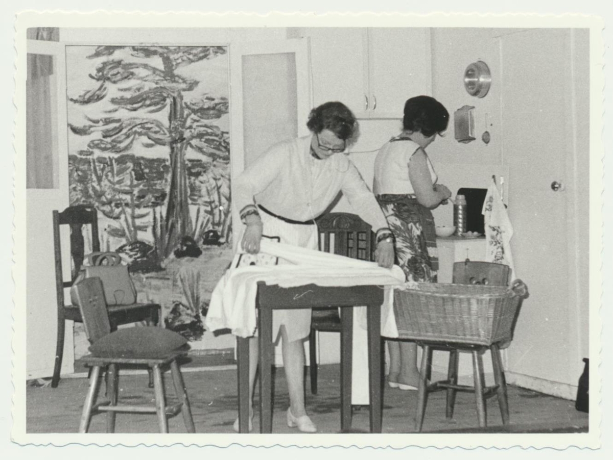 í þokunni. Frá vinstri, Helga og Sigurbjörg.