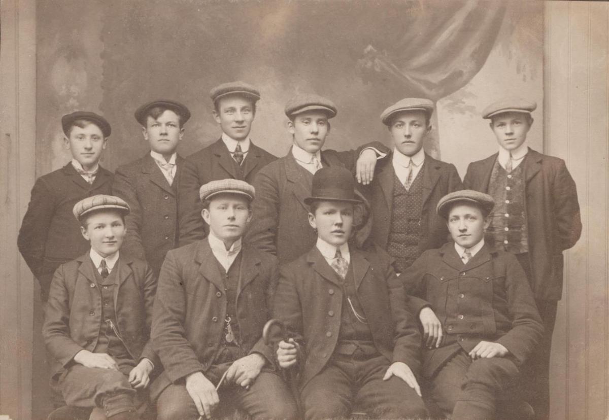 Gestur Z. Magnússon á Staðarfelli (efri röð, þriðji frá vinstri) í hópi nemenda við Gangfræðiskólann á Akureyri árið 1912.