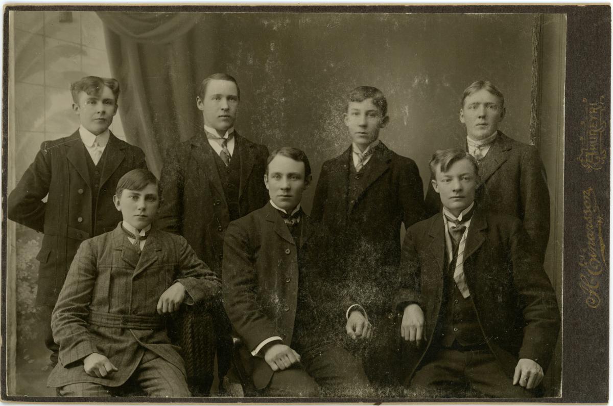 Gestur Z. Magnússon á Staðarfelli (neðri röð fyrir miðju) í hópi bekkjabræðra sinna í Gagnfræðiskólanum á Akureyri.