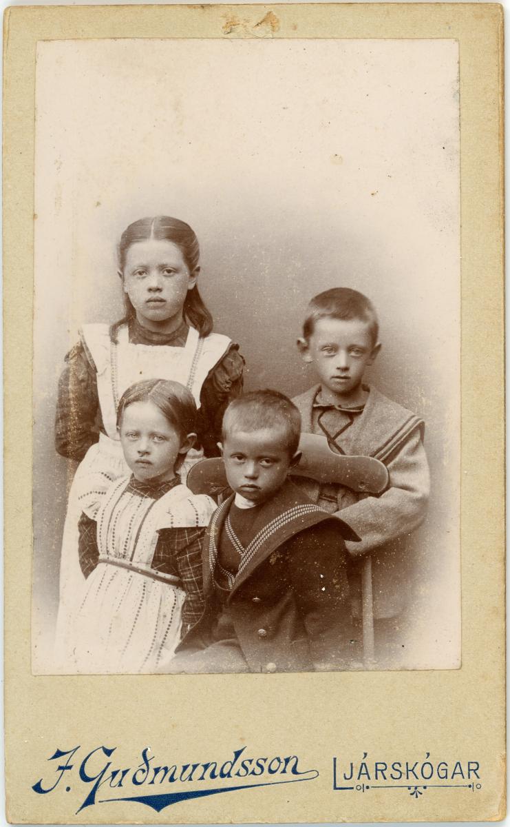 Fjögur barna Þorgilsar og Halldóru í Knarrarhöfn. Steinunn og Sigmundur í aftari röð, Helga Soffía og Friðjón Hjörleifur í fremri röð.