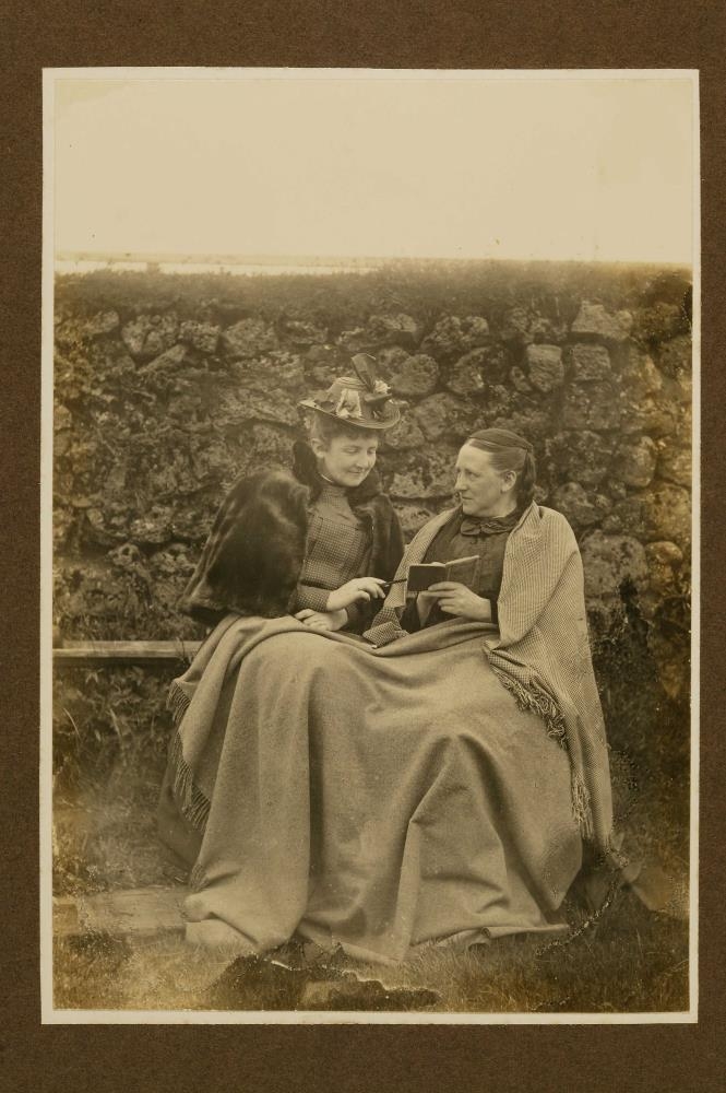 Mynd úr safni Oline Lefolii kaupmannsfrúar á Eyrarbakka. Frú Oline Lefolii að læra íslensku hjá Ástu Hallgrímsson f. Thorgrímsen.
