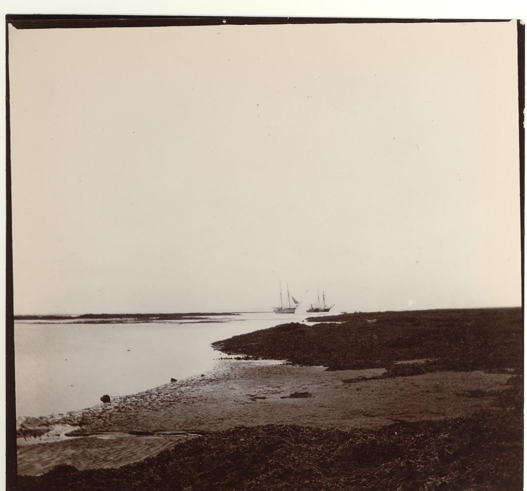 Mynd úr safni Agnesar Lunn, sem hún tók í dvöl sinni á Eyrarbakka. Af skerjunum við brúna.