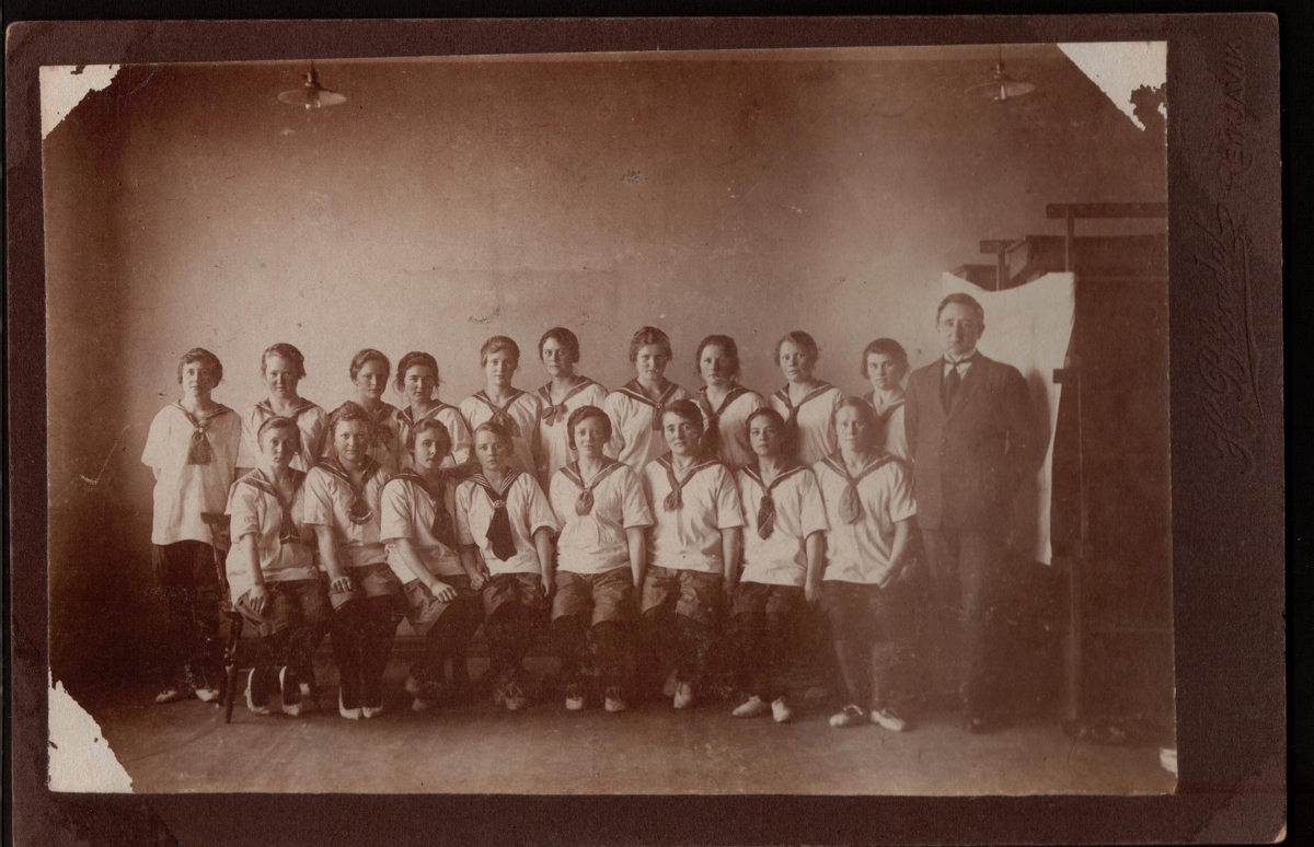 á Eyrarbakka um 1920. Aftari röð frá vinstri. Elín Eiríks, Guðrún, Vigdís,