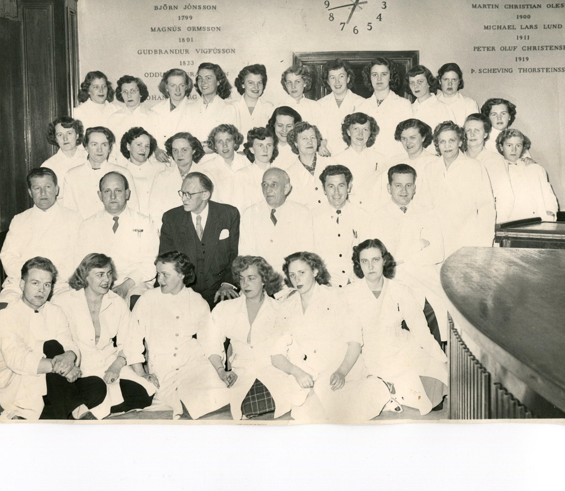 Reykjavíkur Apótek um 1950. Efsta röð frá vinstri. 1. Ragna Böðvarsdóttir 2. Gróa Eggertsdóttir 3. Guðlaug Þorleifsdóttir 4. Guðrún Erl. 5. Ásta Halldórsdóttir 6. Áslaug Stephensen 7. Lilja Gunnarsdóttir 8. Guðfinna Guðmundsdóttir 9. Hulda Sigmundsdóttir 10. Friðbjörg Steinþ. 11. Ásdís Jónsdóttir 12. Jóna Þorláksdóttir 13. Guðrún Árnadóttir 14. Guðmunda Gísladóttir 15. Stella Böðvarsdóttir 16. Helga Arason 17. Gyða Einarsdóttir 18. Thyra Juul 19. Else Gíslason 20. Sigríður Aðalsteinsdóttir 21. Guðrún Jónsdóttir 22. Guðbjörg Guðrmundsdóttir 23. Hjördís Wathne 24. Stella Eyjólfsdóttir 25. Karl Lúðvíksson 26. Sigurður Ólafsson 27. Þorsteinn Sch. Thorsteinsson 28. Aksel Kristensen 29. Ólafur B. Guðmundsson 30. Sigurður Magnússon 31. Ólafur Ólafsson 32. Lella 33. Ásta Guðmundsdóttir 34. Unnur Helgadóttir 35. Steinunn Hjartardóttir 36. Áslaug Guðmundsdóttir