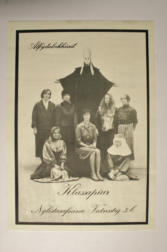Veggspjald: vegna sýningar Bengt, sýnir mynd af konu á framhliðinni, á bakhliðinni eru ljóð ásamt sýningarupplýsingum.