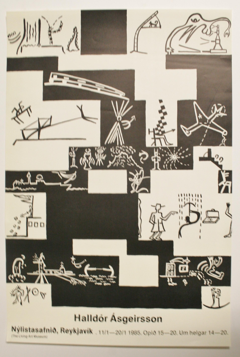 Veggspjald: vegna sýningu Halldórs, sv/hv skissur ásamt kynningartexta.