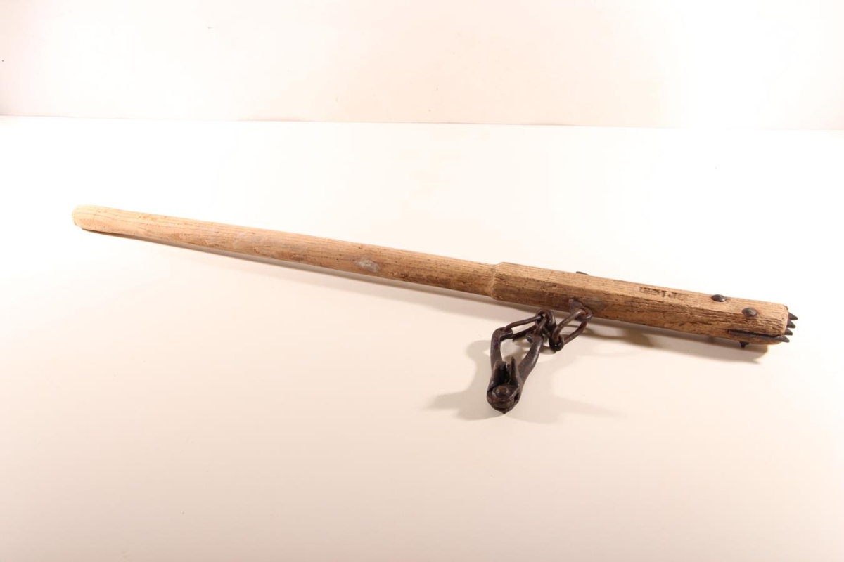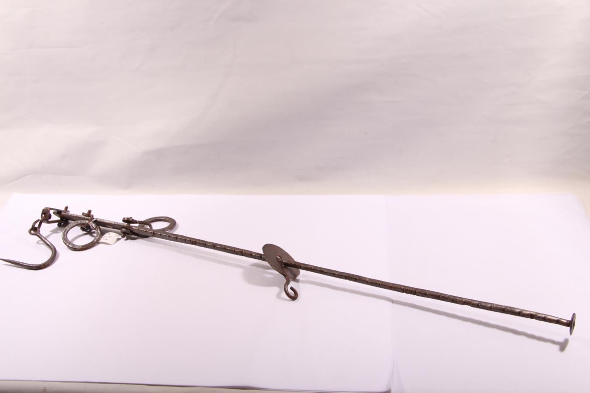 Reisla úr járni. L. 90,5 cm. Ekkert lóð er á henni. Hefur verið tekin og pússuð upp og lökkuð. Á endanum eru tveir járnhringir og einn krókur. Á reislu eru merki í rómverskum tölum (III, IIII, V, VI, VII, VIII, IX, X). Á milli þeirra eru strik, 4 stk.
