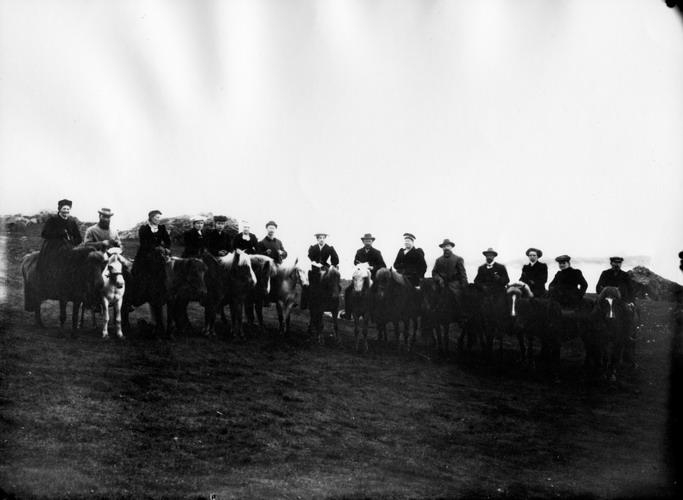 Hópmynd af fólki á hestum.