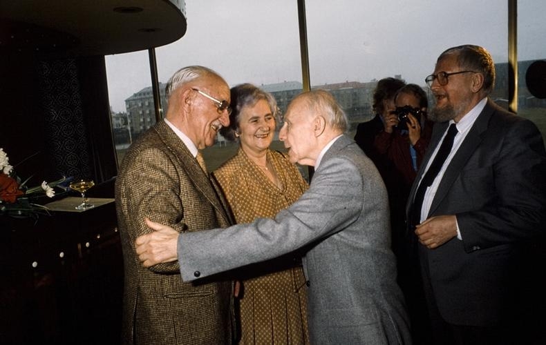 9. myndir: Úr afmælishófi menntamálaráðuneytisins til heiðurs Halldóri Laxness áttræðum, sem haldið var á Hótel Sögu 23. apríl '82. Mörg þekkt andlit úr Ísl. þjóðlífi. Ljósm: S.Þ. apríl '82.