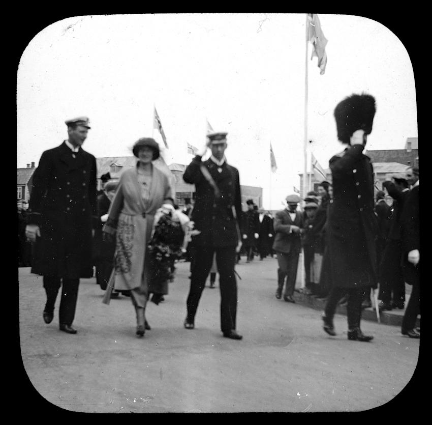 Reykjavík. Konungskoman. Kristján X og Alexandrine ásamt sonum sínum, Friðrik og Knúti. 1921.