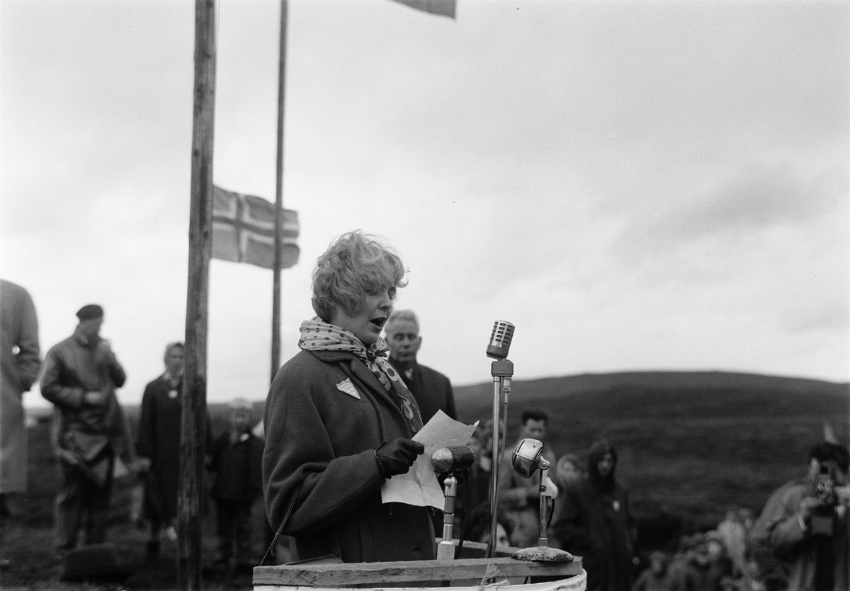 Myndir frá stofnfundi Samtaka hernámsandstæðinga á vesturbakka Almannagjár á Þingvöllum í september 1960.