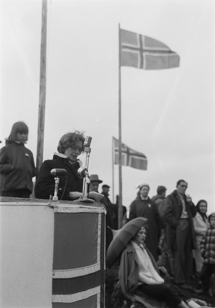 Myndir frá stofnfundi Samtaka hernámsandstæðinga á vesturbakka Almannagjár á Þingvöllum í september 1960.