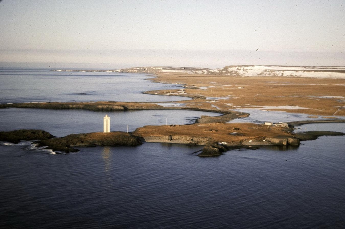 Loftmynd af Kálfshamarsvík á Skaga. Ljósm: Óm. R. feb. ´86.