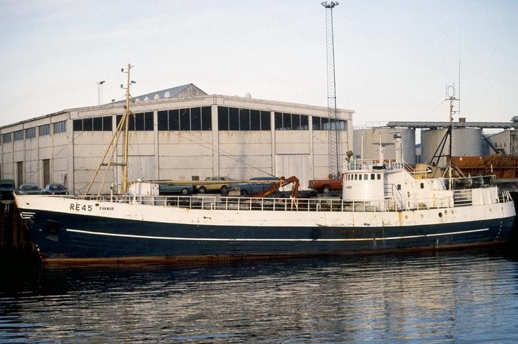 Svanur RE-45. Svanur við bryggju í Reykjavík. Víð mynd.