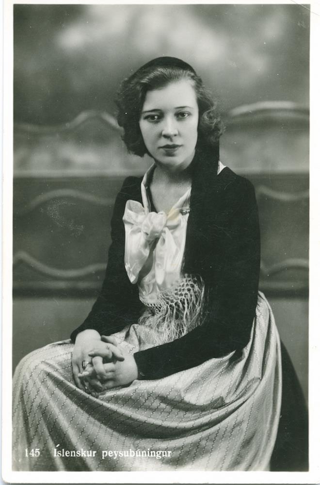 fyrir. Neðst stendur: '145. Íslenskur peysubúningur.'