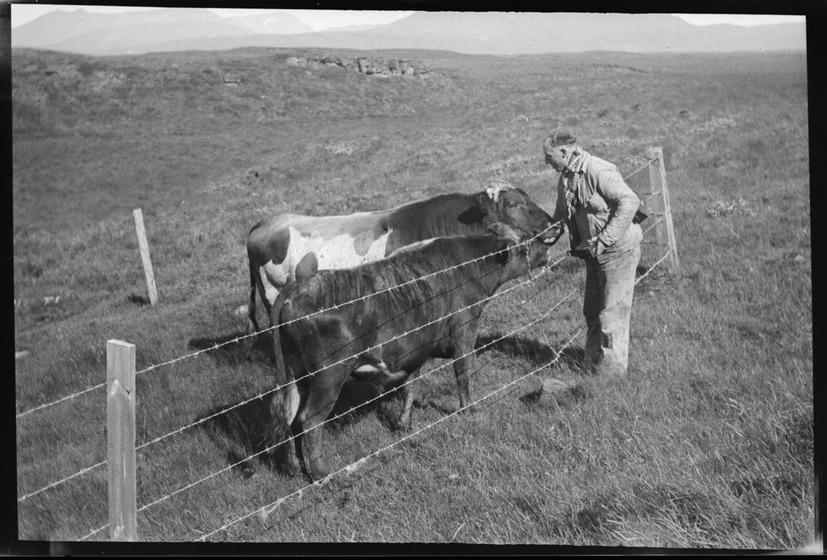 að gefa nautum í gaddavírsgirðingu. Ólafur Guðjónsson (f. 19.8.1910,