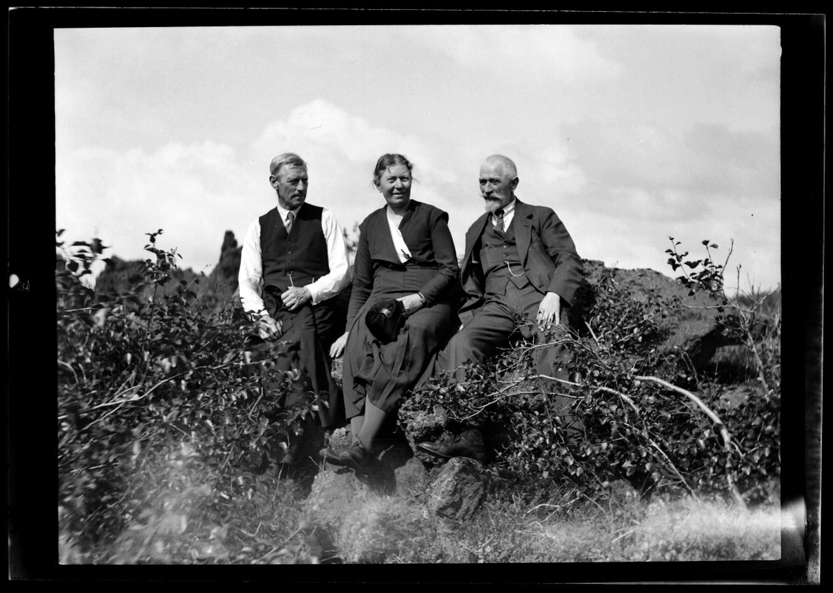 sitja í kjarrivöxnu hraunlendi. Margarethe Krabbe og Thorvald Krabbe.