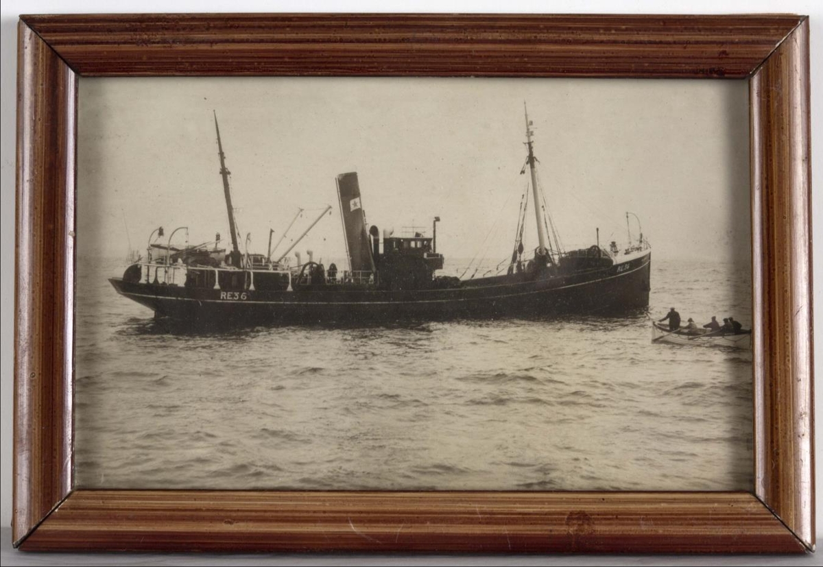 Svarthvít ljósmynd af togaranum Nirði RE 36. Myndin er í rauðbrúnum tréramma með gleri og eflaust tekin á árunum 1920-1932. Njörður var gerður út frá Reykjavík 1920 til 1932 en síðan frá Hafnarfirði og hét þá Haukanes GK 347. Skipið var tekið af skrá 1952.