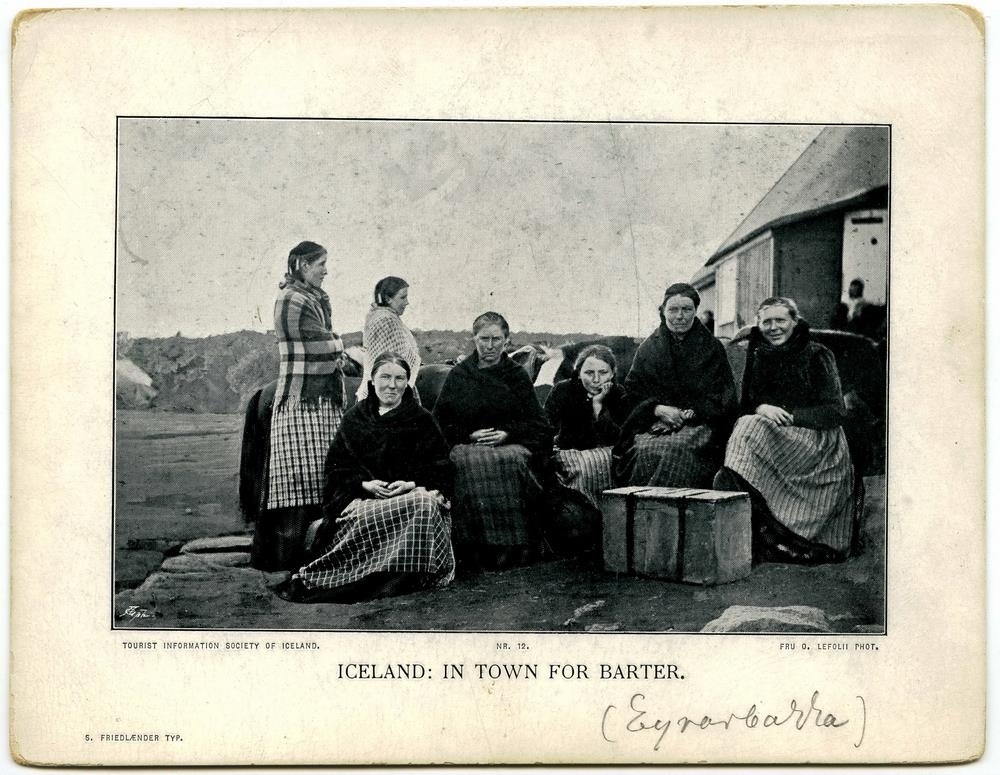 "Iceland: In town for barter." Konur í kaupstaðarferð á Eyrarbakka. "Tourist information Society of Iceland. Nr. 12".