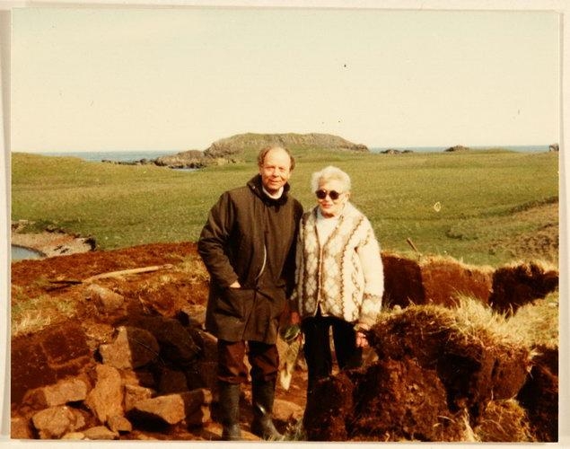 Kristján Eldjárn og Sigríður Gísladóttir í rústunum í Áttahringsvogi í Papey.