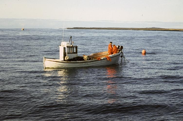 trillu á síldveiðum. Tveir menn sjást um borð.
