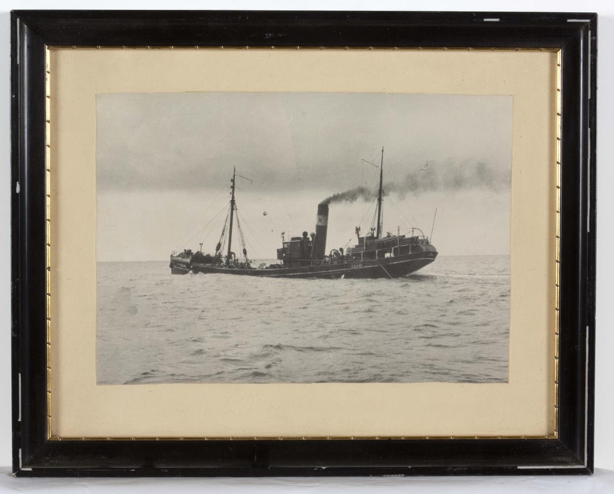 Innrömmuð ljósmynd af togaranum Maí GK 346. Aftan á er skrifað MARK 4.