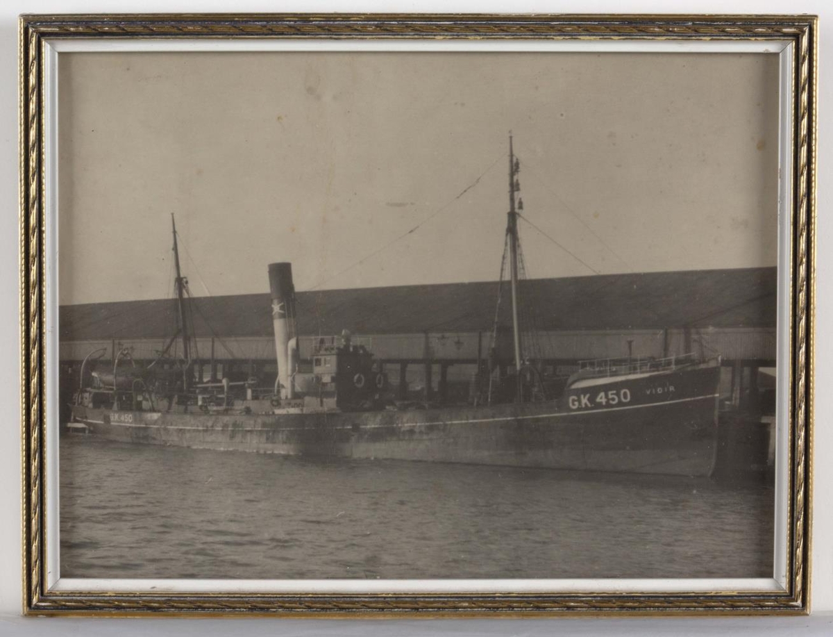 Innrömmuð ljósmynd af togaranum Víði GK 450. Aftan á hana er skrifað MARK 24.