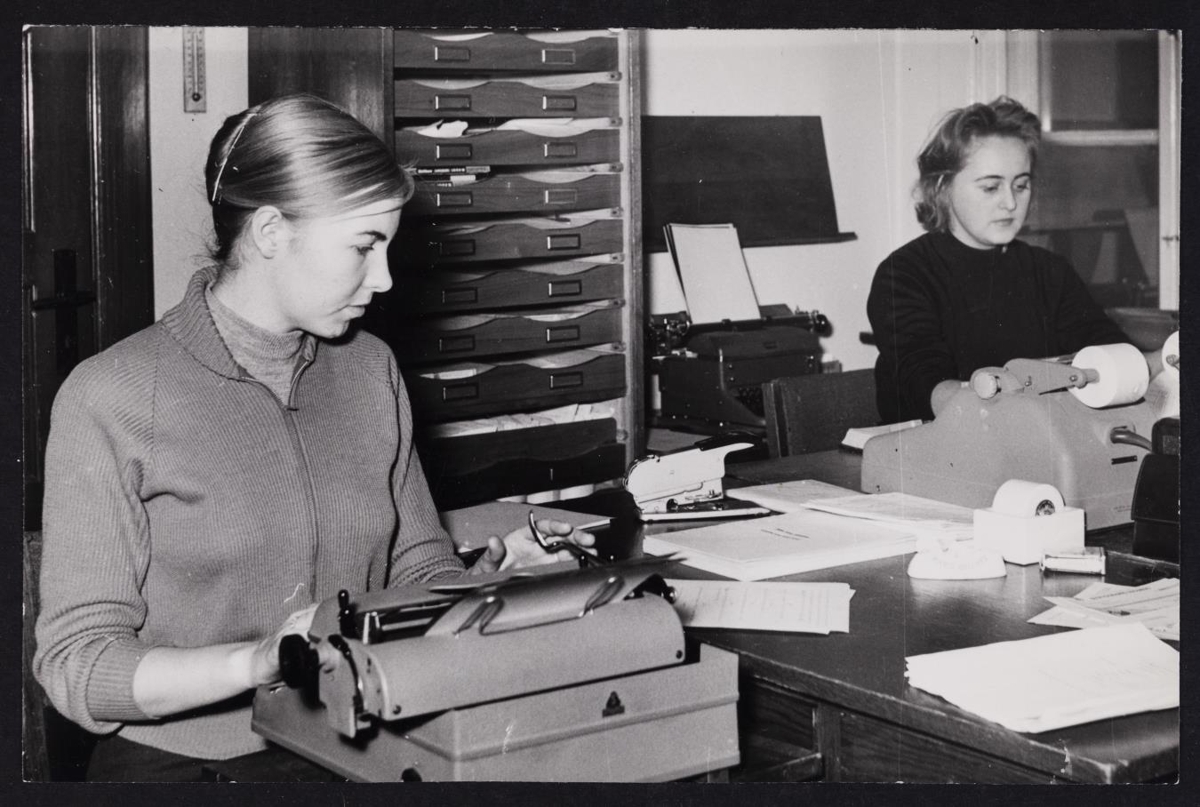 o.fl. árið 1958. (Ártal á dagatali á mynd 1240). Á skrifstofunni. Tvær