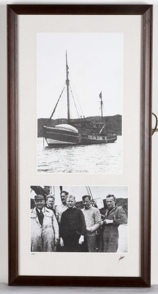 Ljósmynd af vélbátnum Frekjunni BA 271 og áhöfn í ferð til Íslands 21. júlí til 11. ágúst 1940. Þetta eru tvær svarthvítar myndir saman í ramma. Aftan á eru skrifuð nöfn skipshafnarinnar og stutt frásögn um ferðalagið og bátinn. Björgvin Fredriksen og Úlfar Þórðarson augnlæknir skrifuðu grein í Morgunblaðið 21. júlí 1990 í tilefni af því að þá voru 50 ár liðin frá því að Frekja lét úr höfn í Fredrikshavn í Danmörku áleiðs til Íslands.