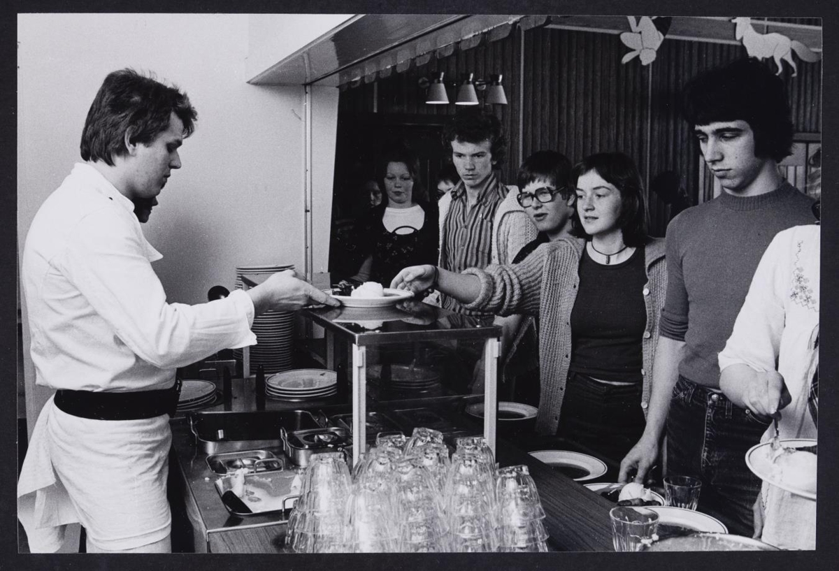 „Skólaárið 1976-1977. Guffi - Guðvarður Gíslason kokkur, Grétar Ingi Símonarson, Arnþrúður Ösp Karlsdóttir, Valur Arnórsson, Trausti Helgason, Þórveig Þormóðsdóttir.“ (BBP 2020)