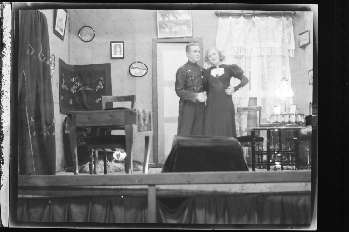 kona á sviði í stofusenu. Siglufjörður. Leikfélag. Sigurður Gunnlaugsson