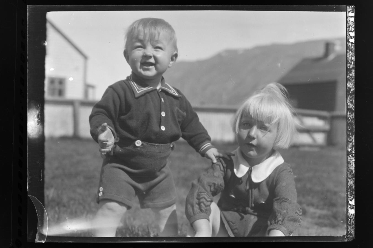 börn í garði. Ólafur G. Einarsson og Dóróthea.