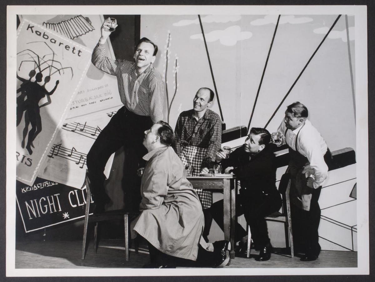 Páskum“. Frá vinstri: Jón Sigurbjörnsson (að syngja „Bjórkjallarann“),