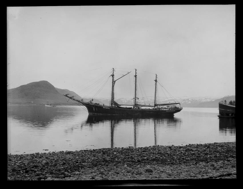 Þriggja mastra skonnorta á legu, Einkennisstafir og heiti óskýrt.