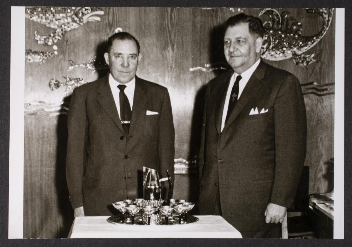 lítið borð. Myndatexti: „Kristján Jóhann Kristjánsson og Sveinn Valfells.“