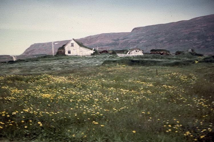 í eyði: Myndin tekin yfir forn kuml og heim að bænum. Einar