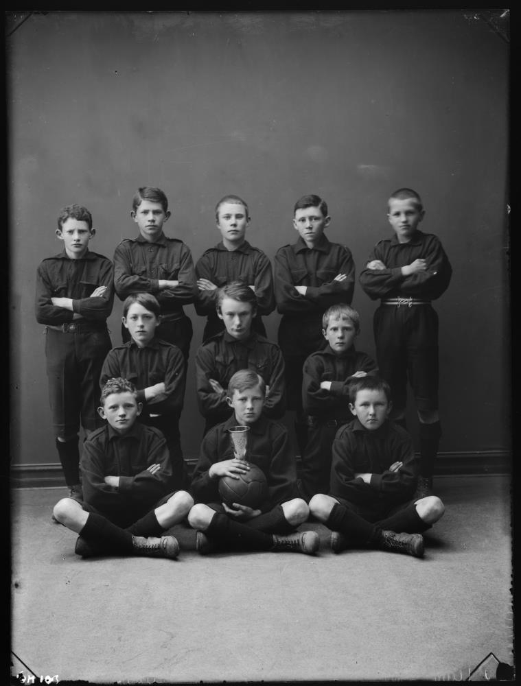 stráka með bolta og bikar. Líklega tekin um 1920. (11, 10 ng).