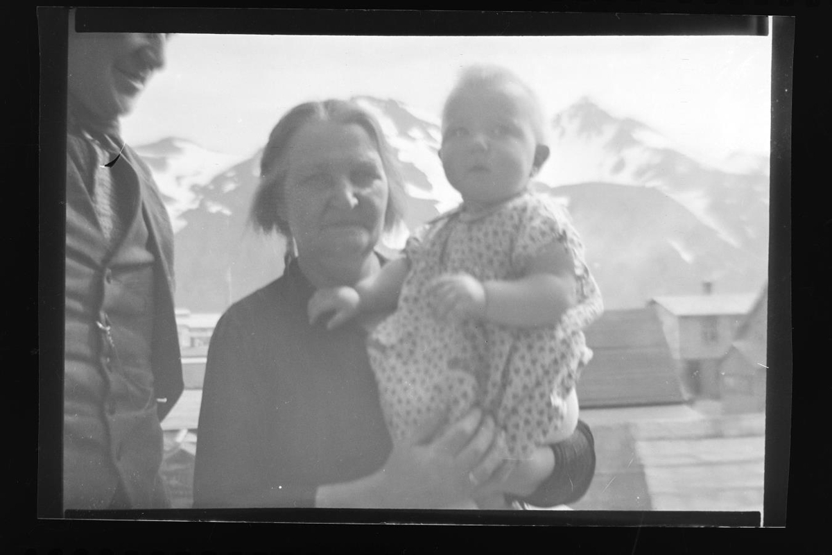 Siglufjörður. Kona með barn í fanginu.