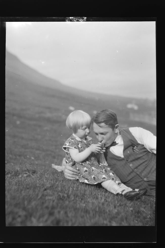 sem lítil stúlka heldur um. Dóróthea og Einar pabbi hennar.
